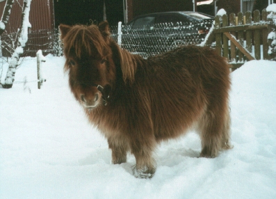 Hart, robust und genügsam so ist jedes Shetlandpony vom Ursprung her. Das Shetlandpony ist ein Herdentier und braucht einen gesunden Herdenverband um sich artgerecht und gesund zu entwickeln. Auf den Shetlandinseln herrscht ein rauhes Klima mit viel Fläche und kargem Futterangebot. Um die natürliche Robustheit der Shettys zu erhalten, muß man auch hier zu Lande gezogene Ponys von Anfang an ihre Ursprungsbedürfnissen gerecht werden. Deshalb bieten wir unseren Ponys ganzjährig große Weideflächen mit einer frei begehbaren Schutzhütte (Offenstall). Die Shetlandponys sind sehr anpassungsfähig an unterschiedliche Witterung. Rechtzeitig zum Winter wächst den Shettys ein dichtes Fell. Das dichte Unterhaar und die langen Deckhaare schaffen eine ideale Thermoregulierung, so dass die Ponys auch bei Eis und Schnee draußen sein können. Wir beobachten, dass unsere Shettys selbst beim ungemütlichsten Wetter (Kälte, Sturm und Regen) den Offenstall meistens nicht aufsuchen. Eher sind die Shettys im Hochsommer ab und zu dort zu finden, wo sie sich wohl Schutz vor Hitze und plagenden Insekten suchen (das was es auf den Shetlandinseln nämlich nicht gibt)!